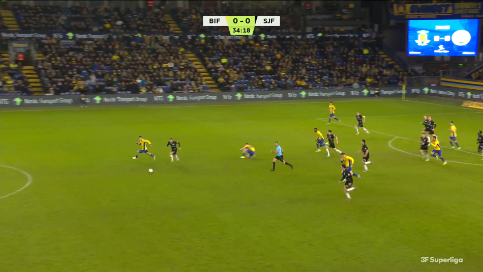Mod Sønderjyske viste han overblikket i en sekvens, hvor det endte med Brøndbys bedste chance (Vallys efter 18 minutter).