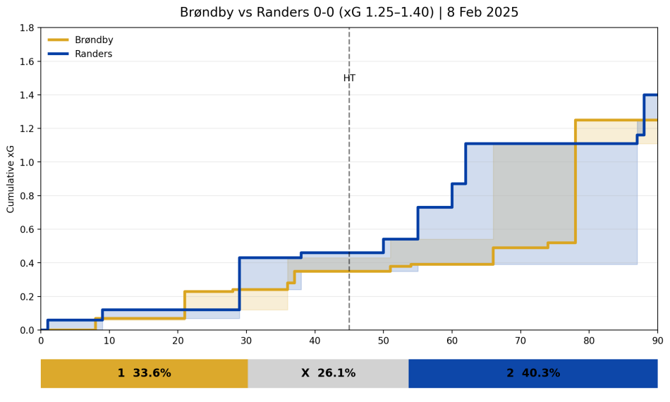 Det var jo ganske tydeligt at Brøndby ikke ville have Randers til at føre bolden op centralt. Og i høj grad lykkes der jo. Randers skabte chancerne på omstillinger, ikke på gennemspillede angreb fra egen bagkæde. Så man kan sige Brøndby havde succes på den del af presset.