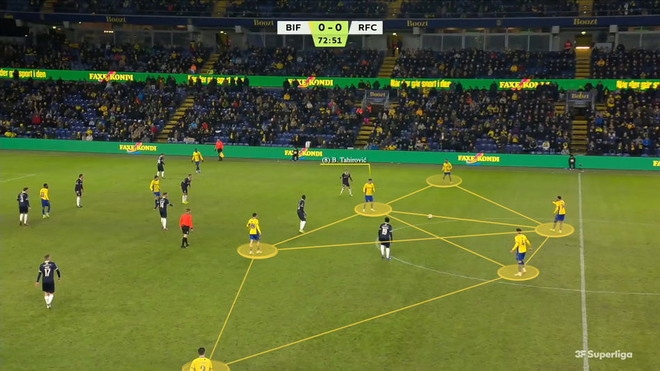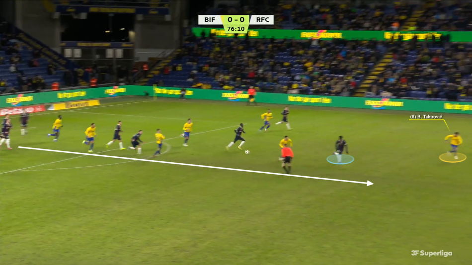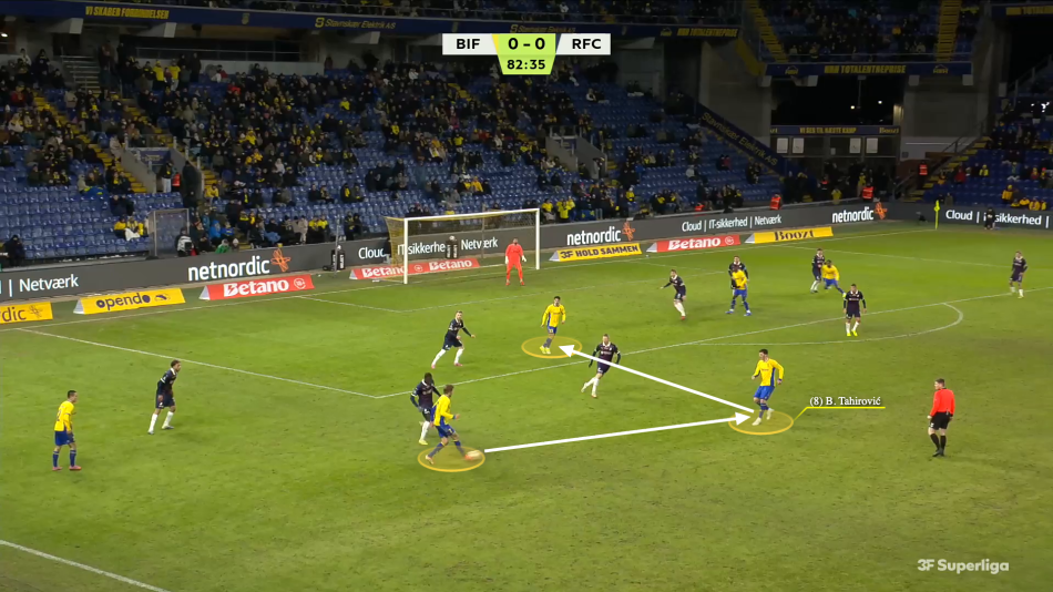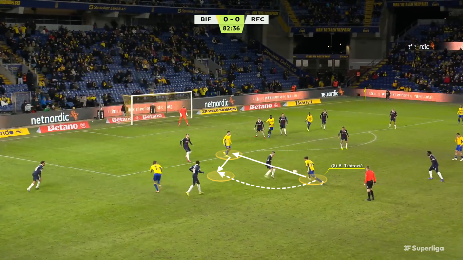 Under Frederik Birk skiftede Brøndby hurtigt fra en tremandsmidtbane i en 4-3-3 til en central duo i den 3-4-3, der blev praksis. Tahirovic spillede bare sine bedste kampe som en del af en trio.