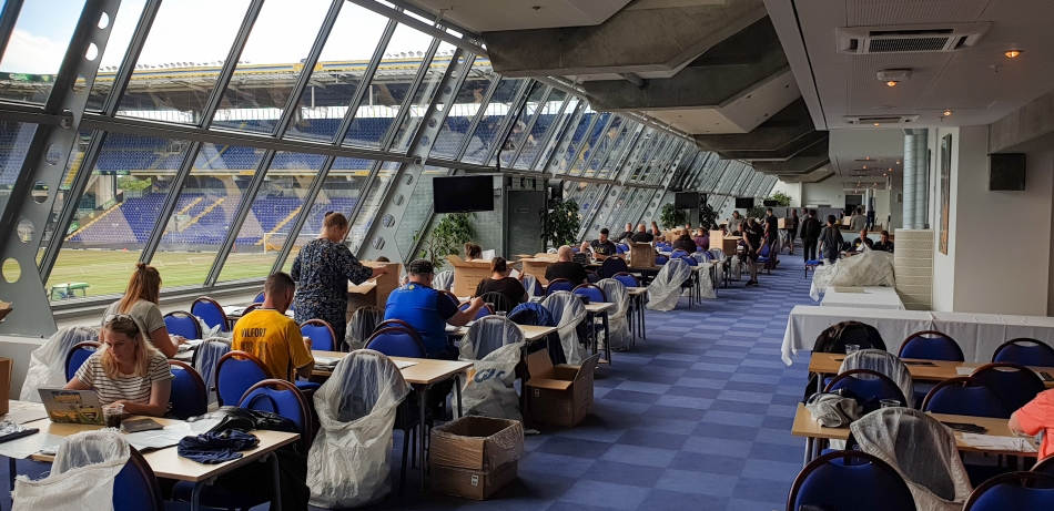 Og her hvordan loungen ser ud, hvor fansene er i fuld gang med at pakke: