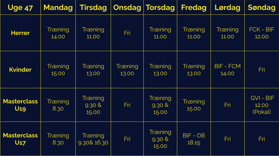 Landskampspausen slutter og alle Brøndby-hold skal i kamp. Herrerne spiller Derby i Parken. U19 indtræder i Pokalturneringen, søndag. U17 møder OB hjemme allerede fredag aften. Kvinderne tager imod FC Midtjylland, lørdag på Bane 2.