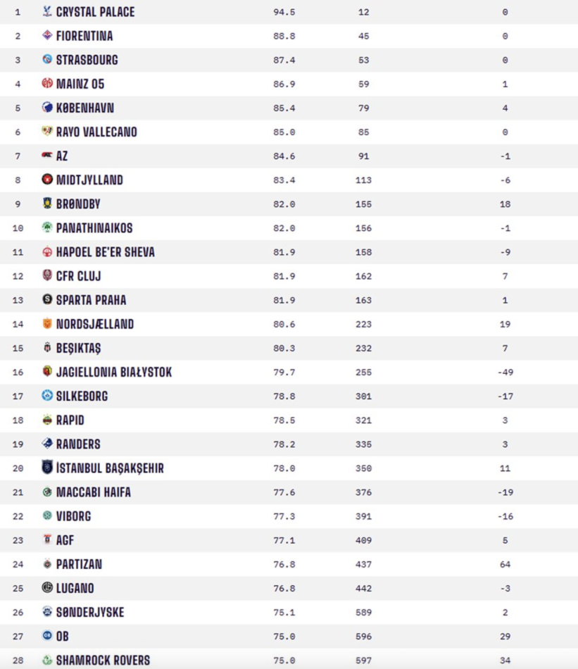 Ryger vi ud i Play-off runden, vil vi have 9.500 point til næste sæson, hvilket ville have været tæt på at give en seeded vej i 24/25 sæsonen. Men det hele afhænger af ét år, hvor vi kommer i ligafasen. Leger vi med tanken og drømmen, kan vi se på, hvad nogle af de hold der deltog i Conference League sidste år, som vi burde kunne sammenligne os med, og se hvad de optjente af point: