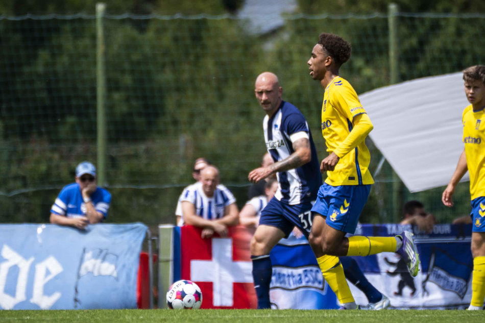 Brøndby var en del på bolden mod hovedstadsklubben fra Tyskland, Hertha BSC. Der kom også antrækket af gode muligheder i kampens indledning, hvor Filip Bundgaard i 9’er rollen fik skabt rum til at få sendt et godt skud afsted.